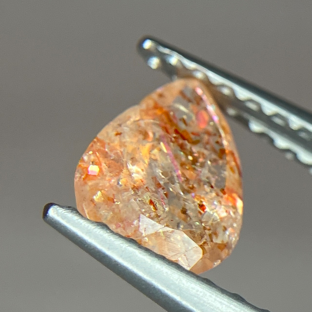 コンフェッティとは紙吹雪という意味で、紙吹雪のようにヒラヒラとした大きなアベンチュリンが散りばめられたサンストーンになります✨