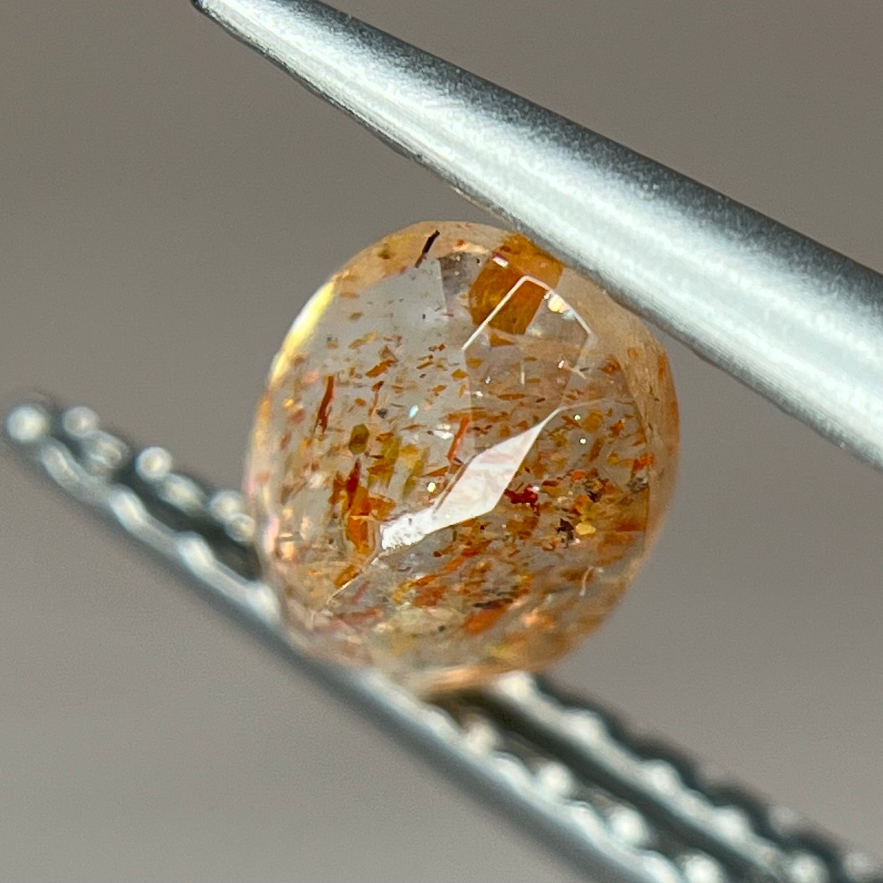コンフェッティとは紙吹雪という意味で、紙吹雪のようにヒラヒラとした大きなアベンチュリンが散りばめられたサンストーンになります✨
