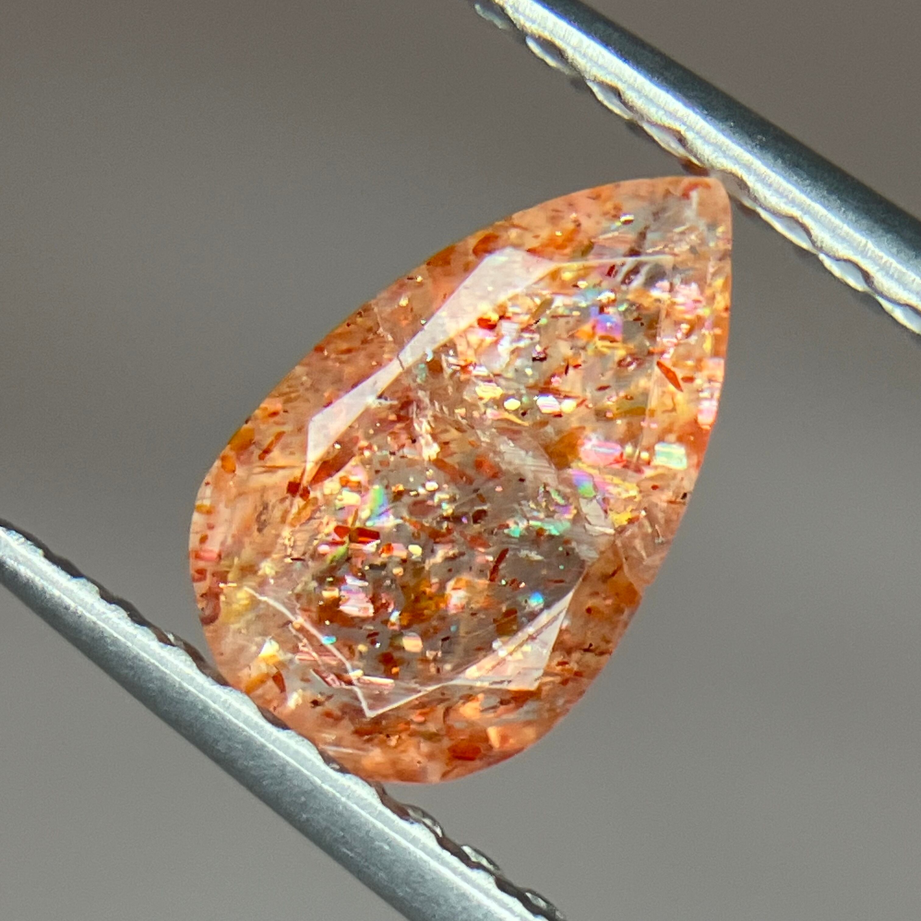 コンフェッティとは紙吹雪という意味で、紙吹雪のようにヒラヒラとした大きなアベンチュリンが散りばめられたサンストーンになります✨