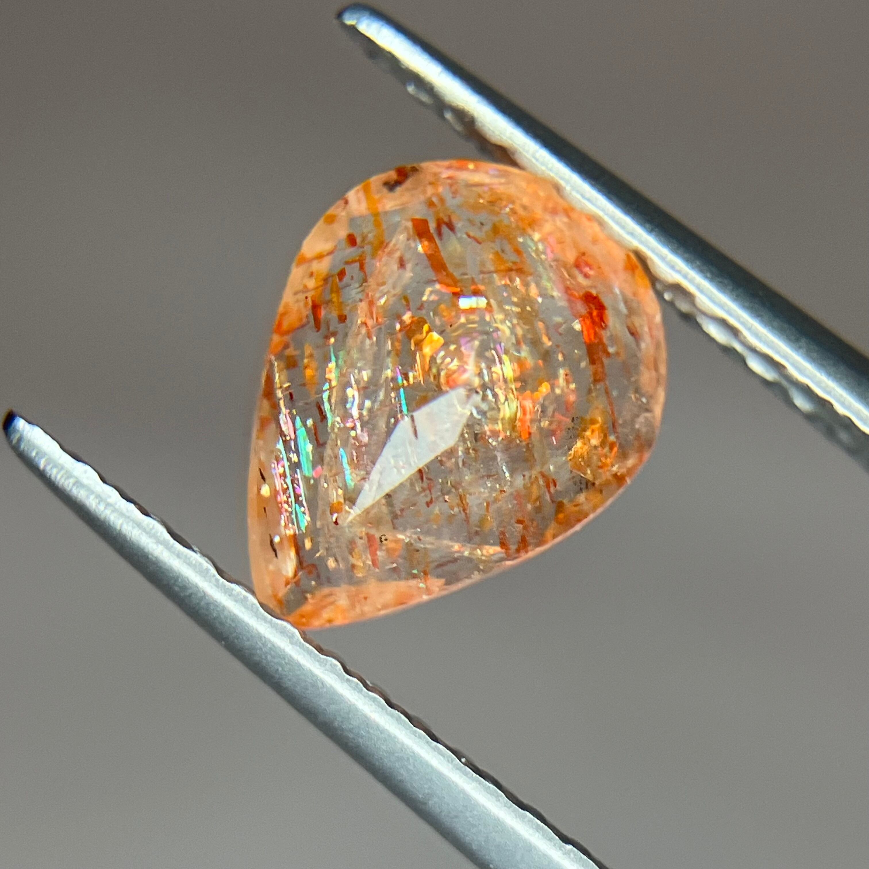 コンフェッティとは紙吹雪という意味で、紙吹雪のようにヒラヒラとした大きなアベンチュリンが散りばめられたサンストーンになります✨